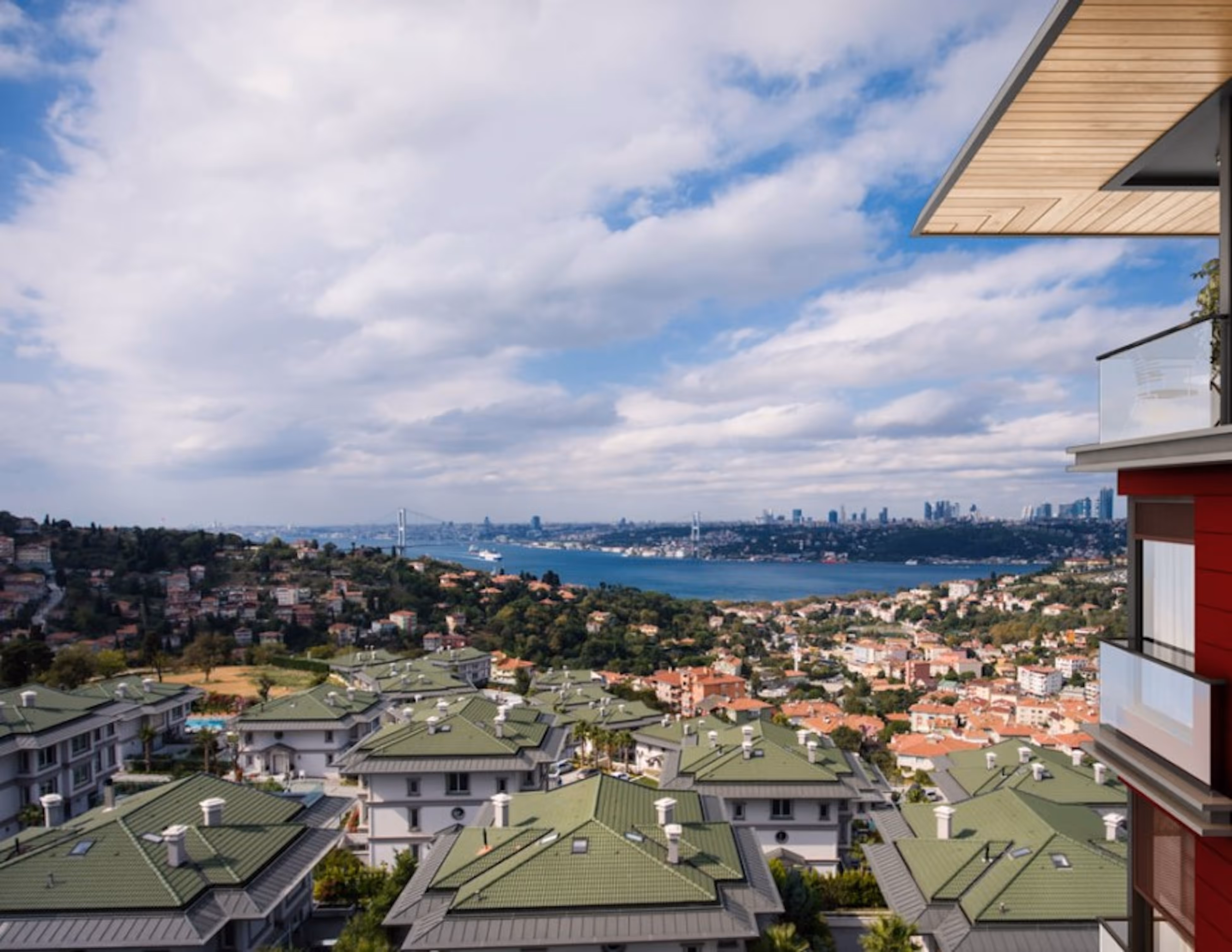 Umgeben ist die Wohnanlage von grünen Oasen, zum Teil mit Blick auf die gigantische Kulisse des Bosporus