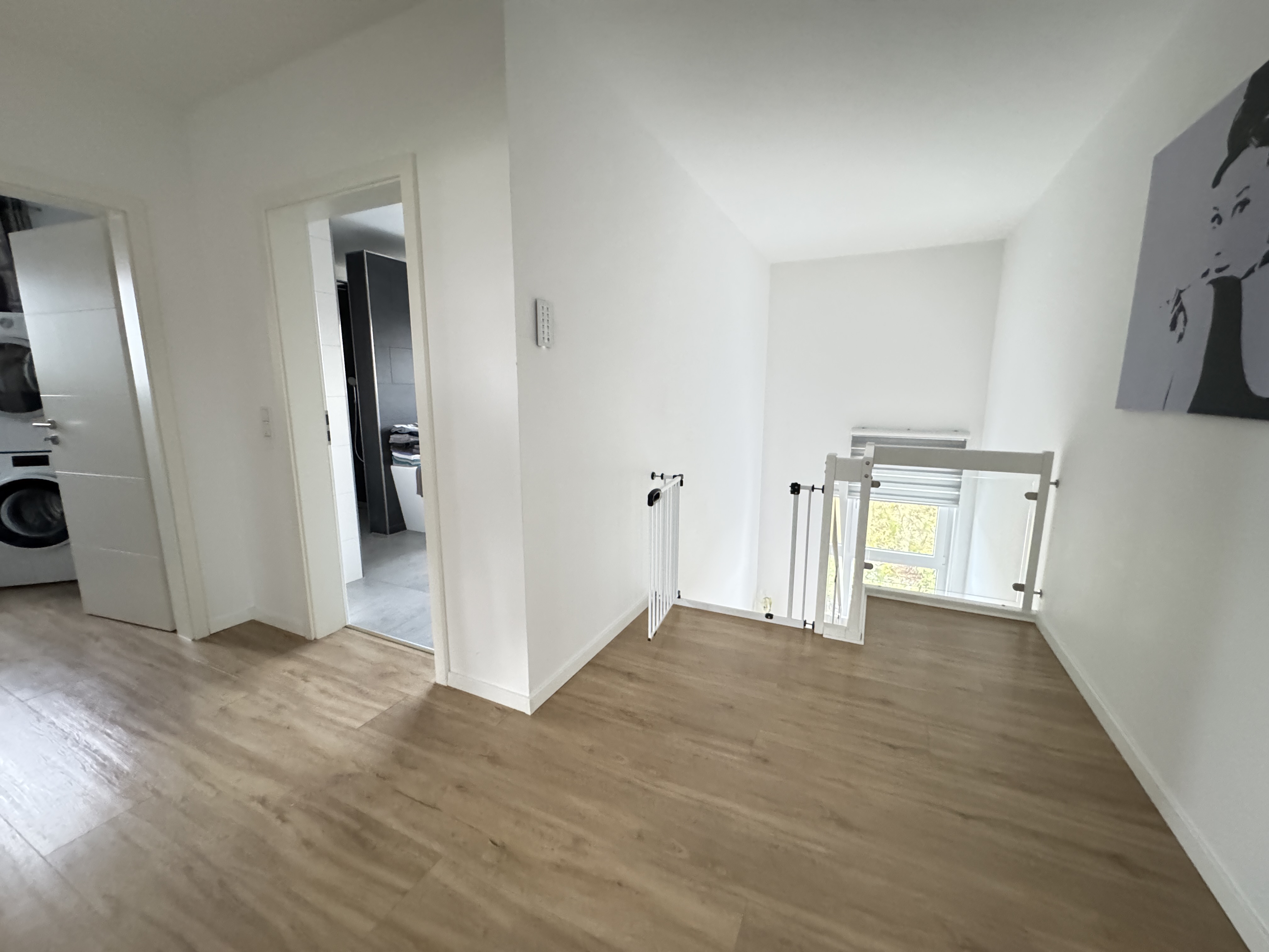Drei geräumige Schlafzimmer bieten reichlich Platz für Familie und Gäste. Im Hauswirtschaftsraum sind Waschmaschine und Trockner optimal untergebracht.