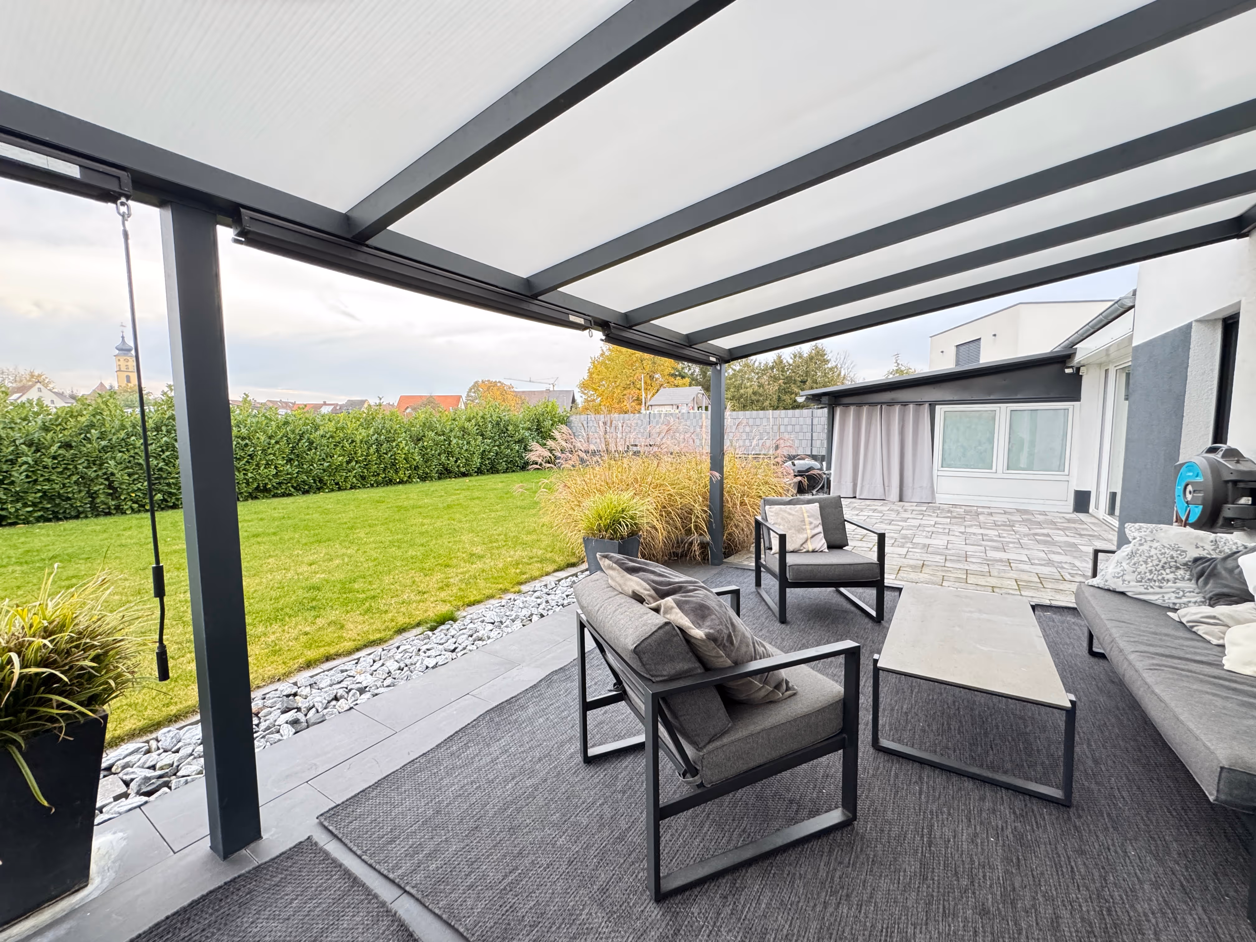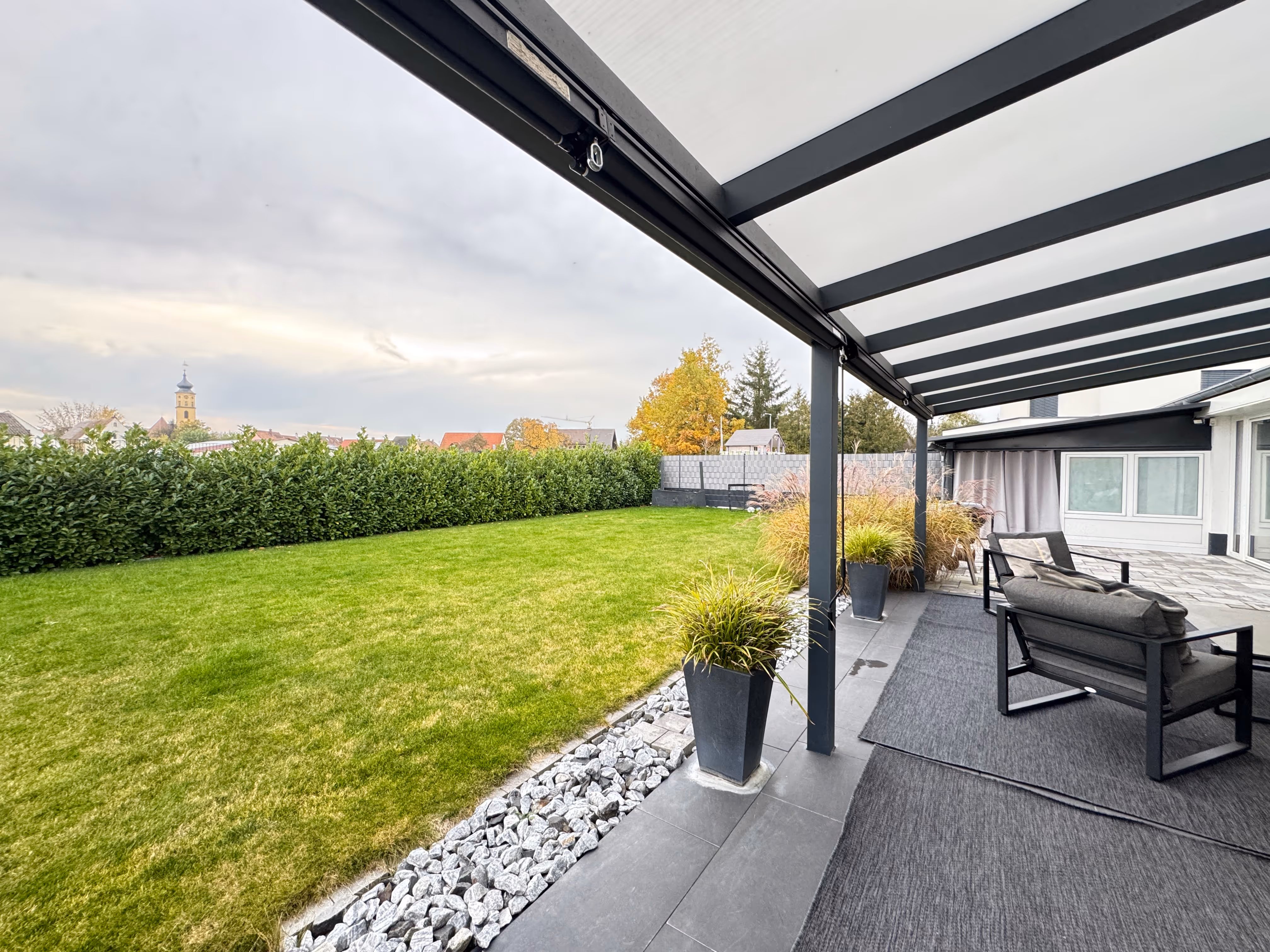 Alle Räume sind mit elektrischen, bus-gesteuerten Rollläden sowie hochwertigen Deckenspots ausgestattet, die für eine angenehme Lichtstimmung und zeitgemäßen Wohnkomfort sorgen.