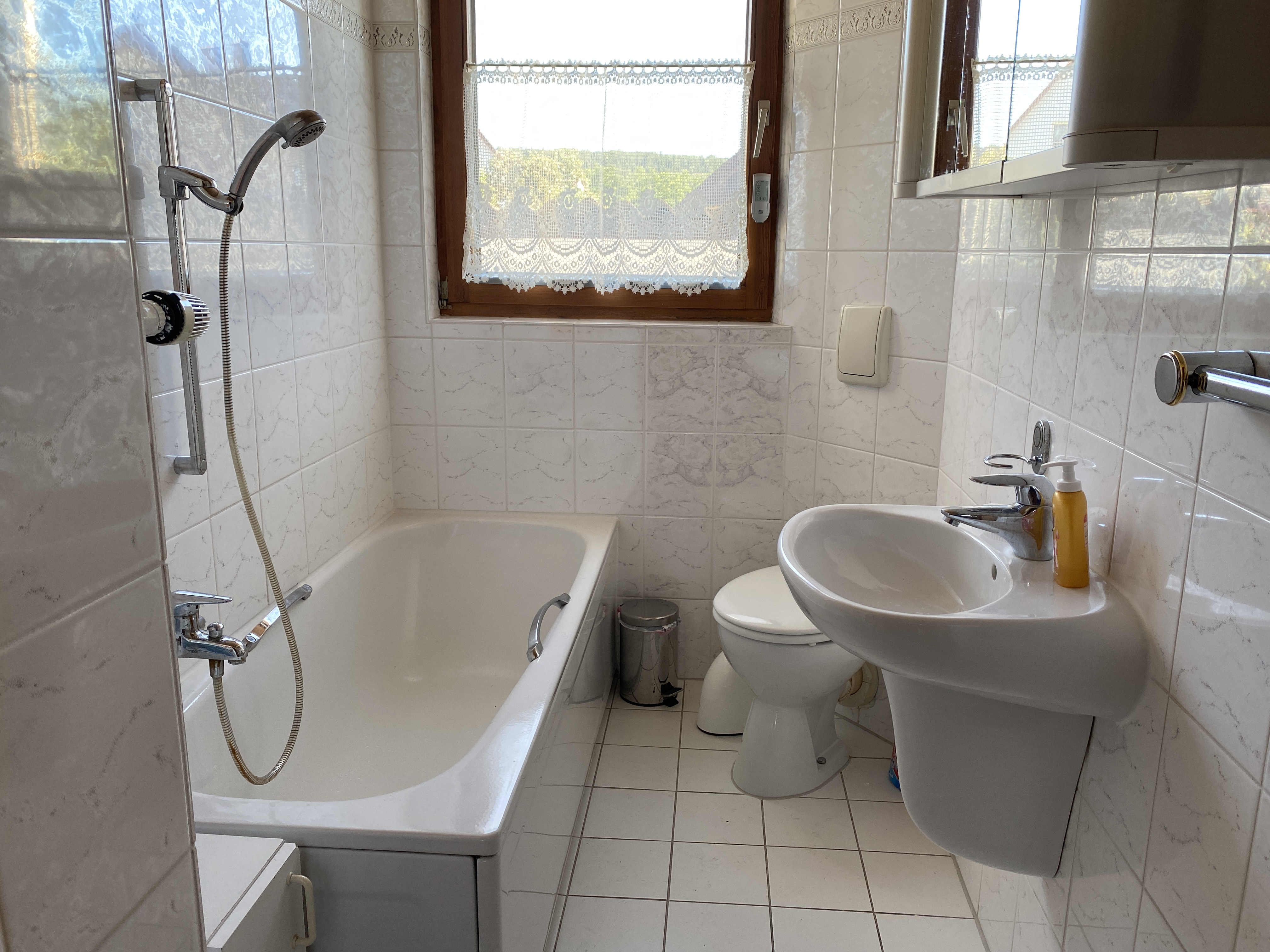 Das hochwertig ausgestattete Badezimmer im Dachgeschoss setzt dabei besondere Akzente: Eine Eckbadewanne mit Whirlpoolfunktion, moderne Einbauten, eine integrierte, elegant abgegrenzte Toilette sowie ein Stellplatz für die Waschmaschine schaffen hier ein komfortables und zugleich stilvolles Ambiente.