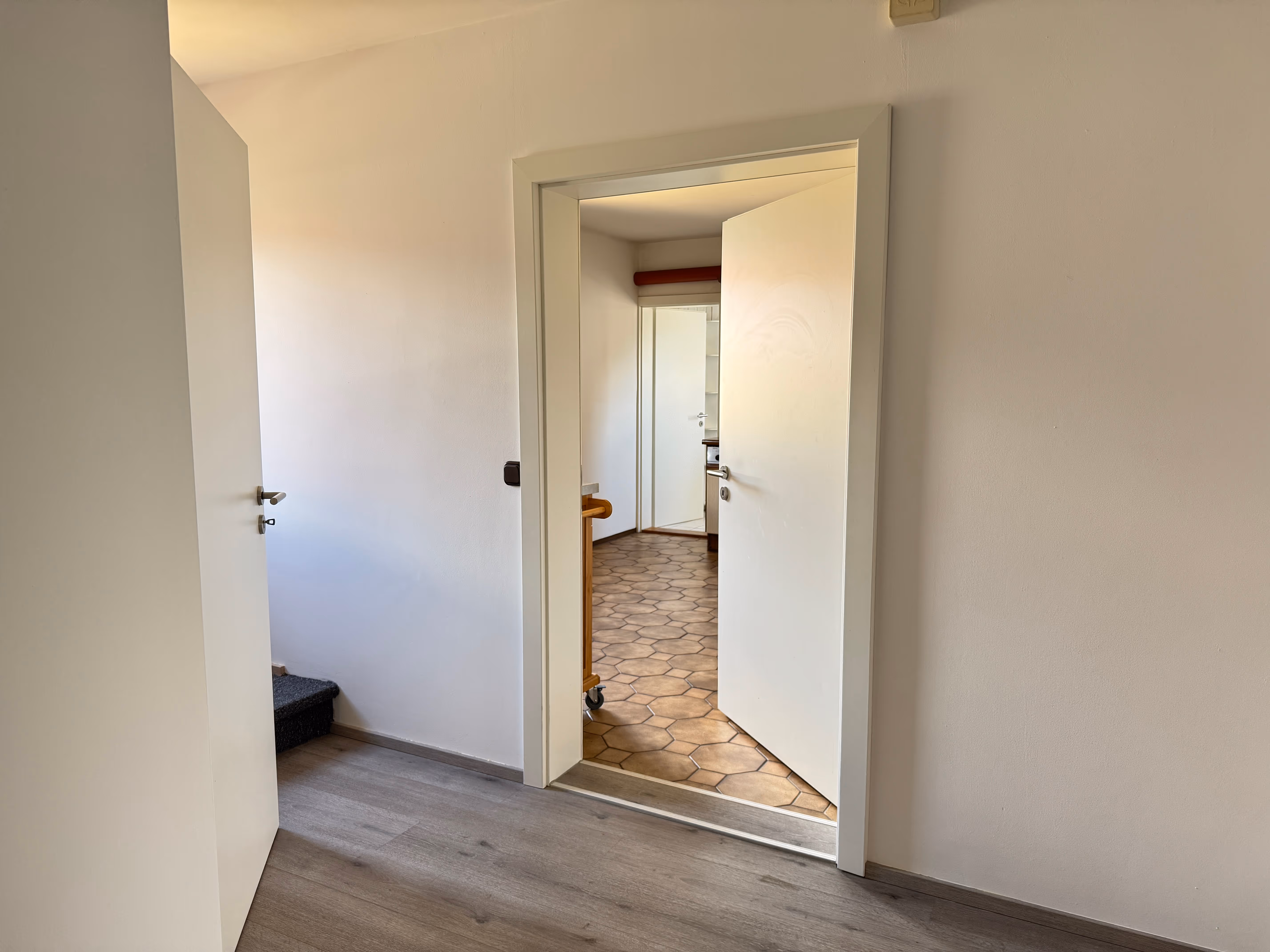 Im Erdgeschoss empfängt Sie ein gemütliches Wohnzimmer, in dem freigelegtes Fachwerk an der Wand den historischen Charme des Hauses unterstreicht. Direkt anschließend lädt das separate Esszimmer mit seiner kunstvoll geschnitzten Massivholzdecke zum Verweilen ein – ein echtes Schmuckstück mit besonderer Atmosphäre. Die helle, gut ausgestattete Küche bietet alles, was das Herz begehrt, während das angrenzende Büro, Raum für konzentriertes Arbeiten oder kreative Ideen schafft. Ein modernes Tageslichtbad rundet das Erdgeschoss harmonisch ab und sorgt für zeitgemäßen Komfort.