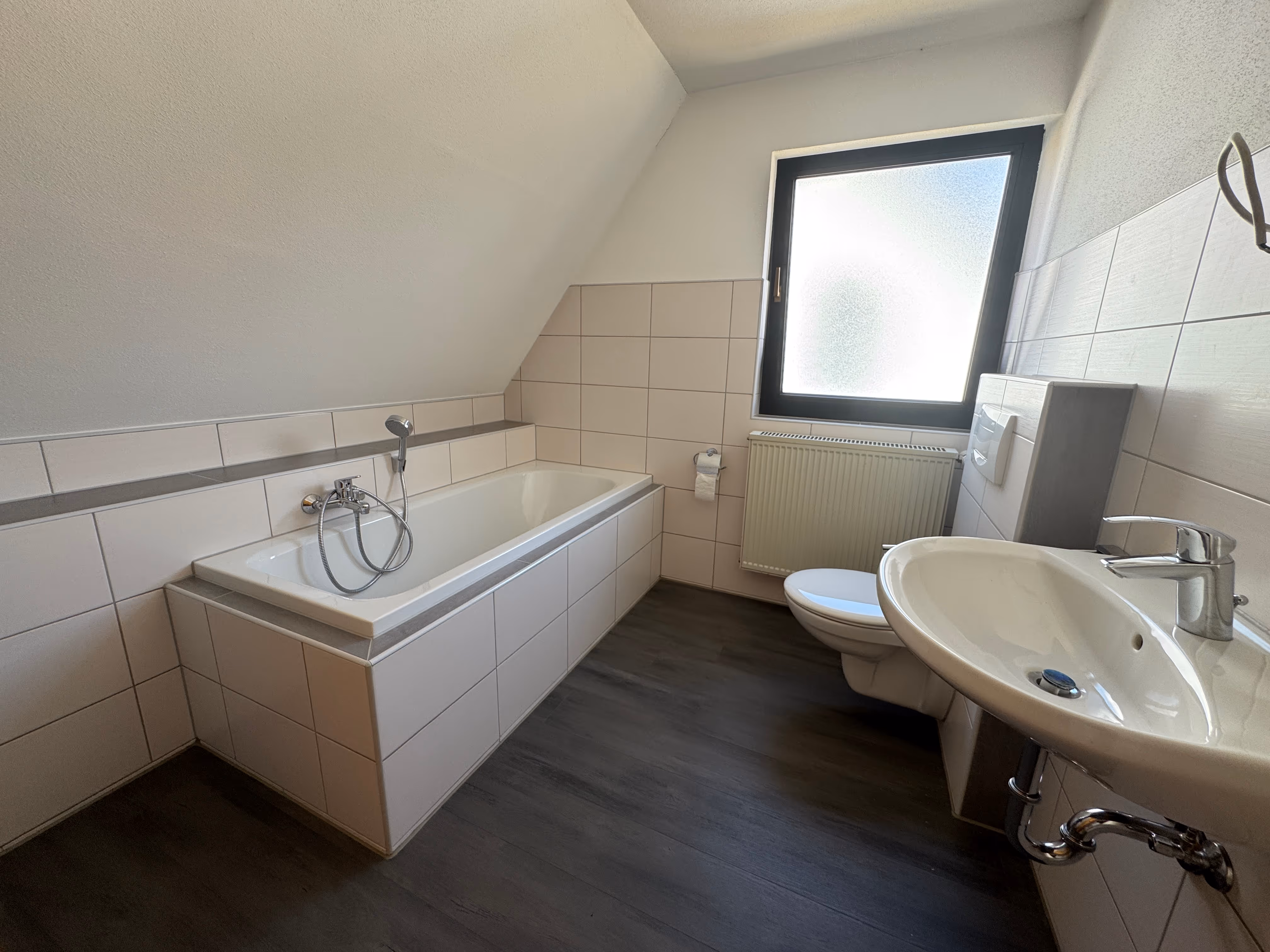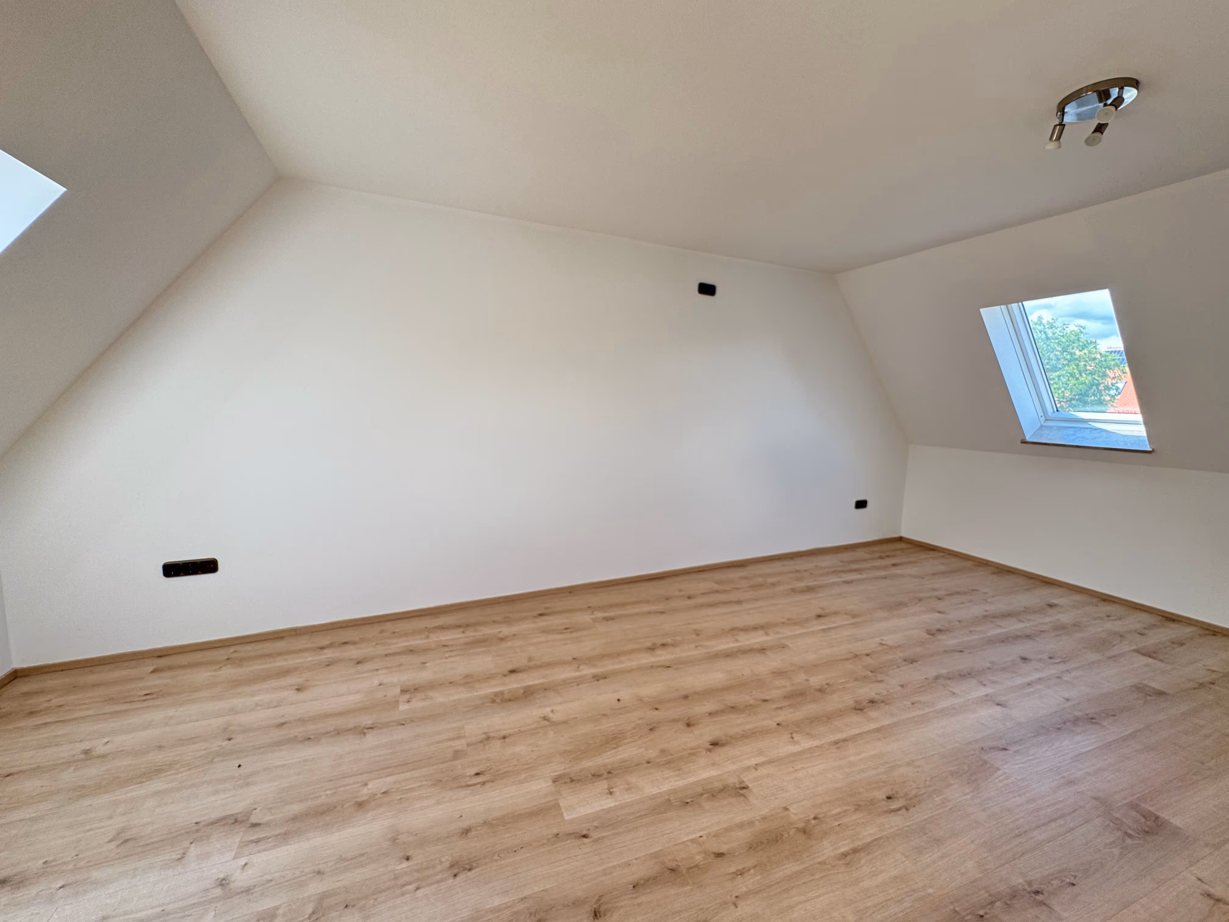Das Obergeschoss bietet drei weitere, gepflegte Wohnräume, zum Teil mit großzügigen Dachflächenfenstern ausgestattet sowie ein neu gestaltetes Badezimmer mit Wanne und WC. Besonders hervorzuheben sind die original erhaltenen Sichtbalken, die den jeweiligen Räumen eine unverwechselbare Note verleihen – ein echtes Highlight für Liebhaber traditioneller Baukunst.